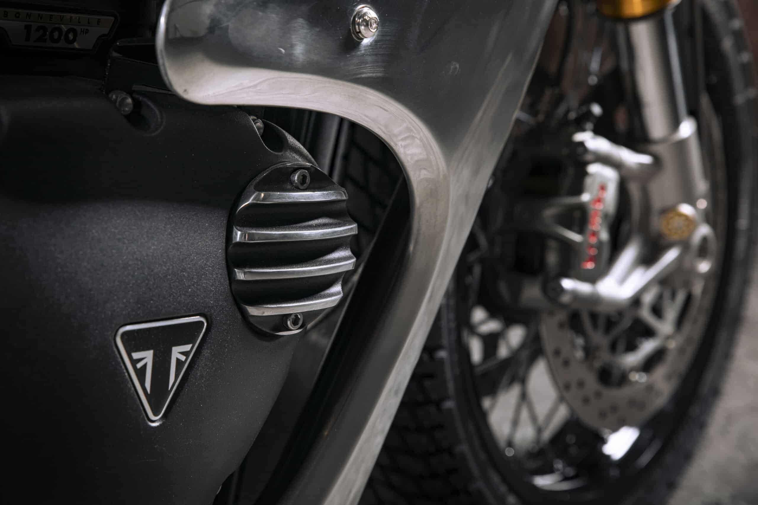– Badge Triumph manufacture ailettes brossées sur carter d’embrayage et caches injecteurs