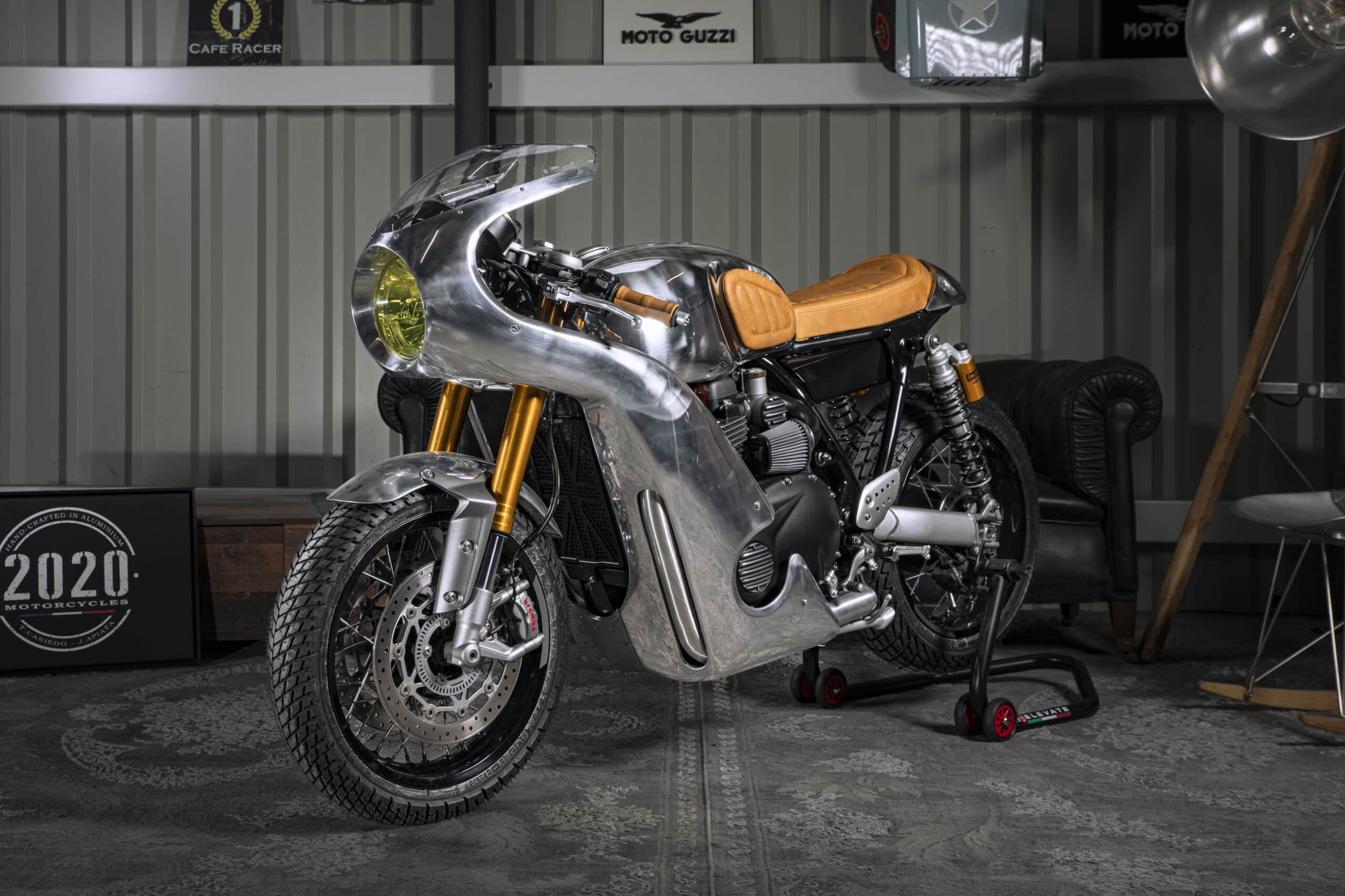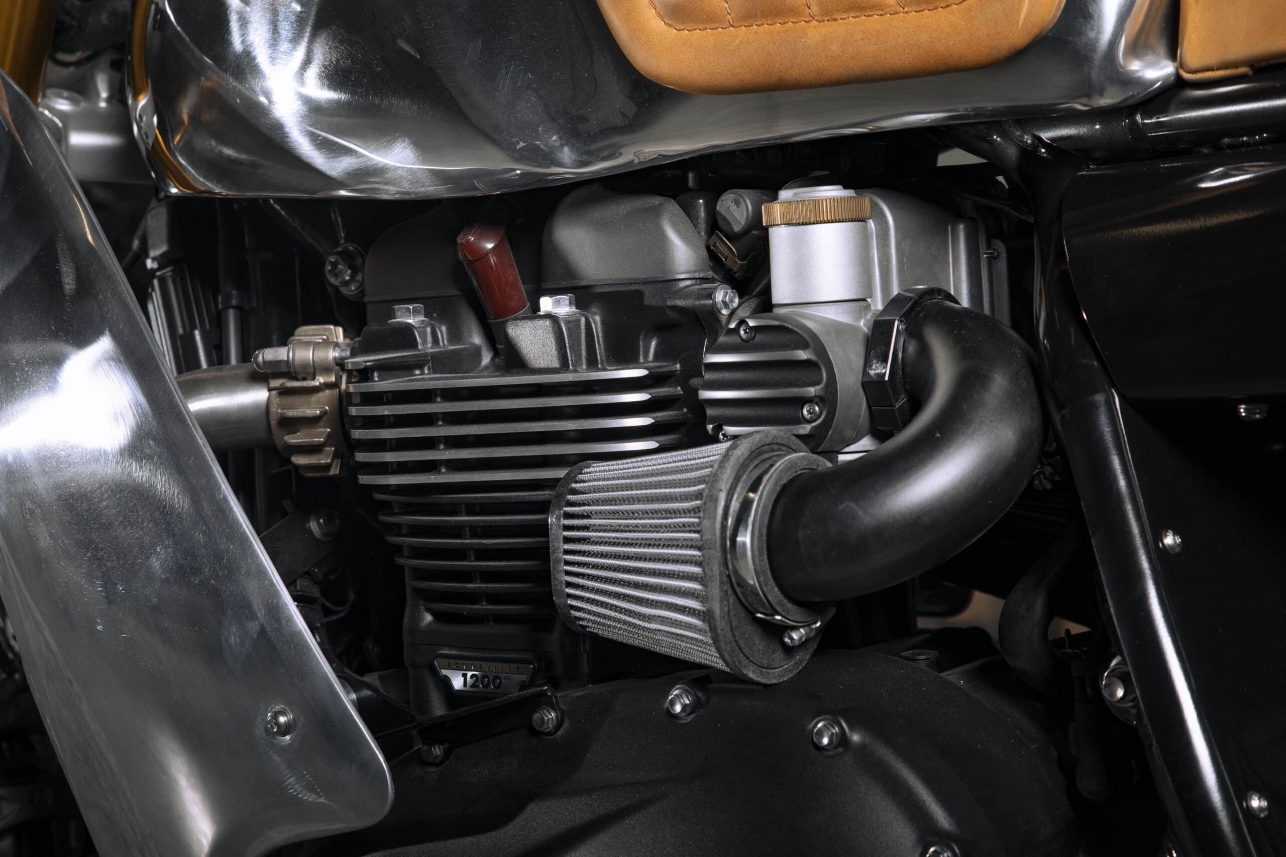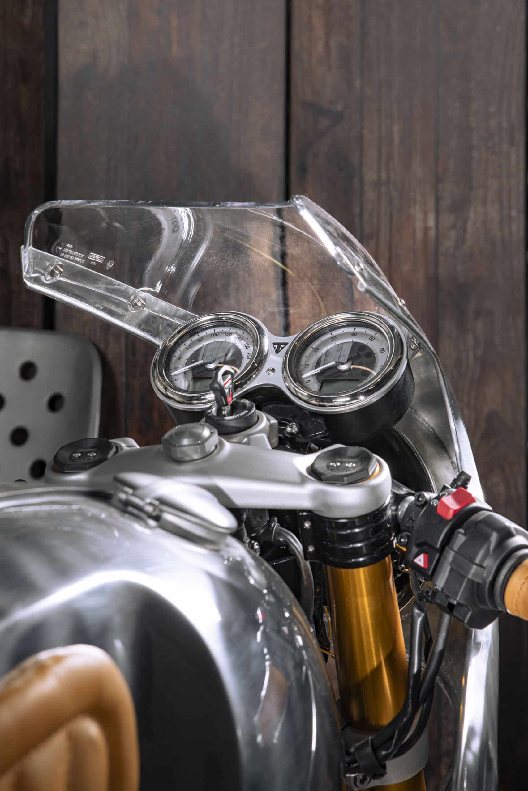 Un café racer anglais pur souche prenant comme base la plus sportive de la gamme classic Triumph, le chant du signe de la Thruxton 1200 sortie du catalogue il y a 2 ans, ici sublimée dans un habillage sur mesure à la hauteur du prestige de la belle.